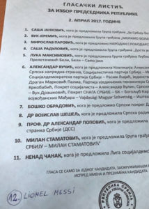 Bilo kako bilo, Mesi nije zvanično bio na listi kandidata za predsjednika, a na to nema ni pravo jer nije državljanin Srbije, pa je stoga ovaj listić nevažeći.